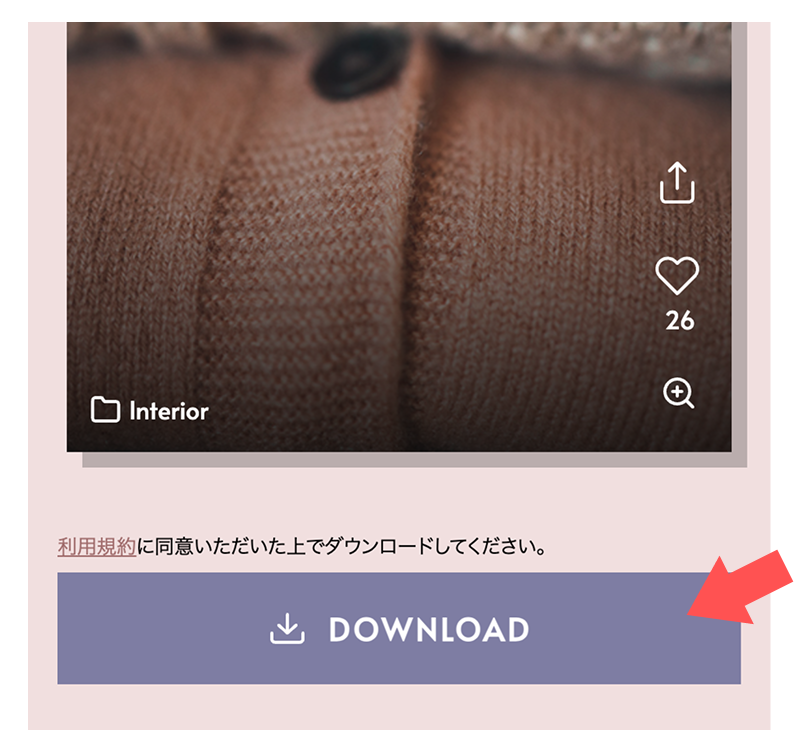 まずはリールやストーリーのサイズに最適化されたお好きな縦型素材を探し、ダウンロードページから紫のボタンを見つけ、素材をダウンロードしましょう。