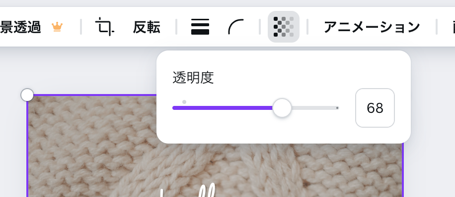 それから、写真を選択して透明度を調整します。
